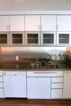 キッチンスペース。システムキッチンの反対側にはカップボードもあります。