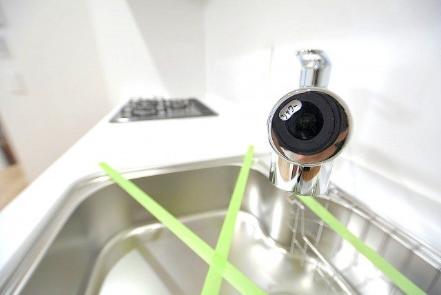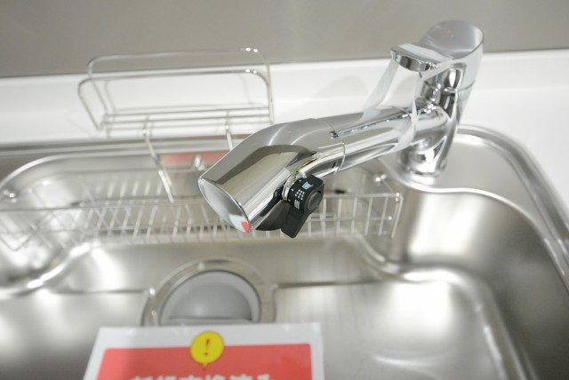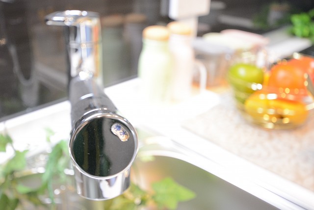 水栓は浄水機能付きです。わざわざ重たい水を買ってくる必要もありませんよ。