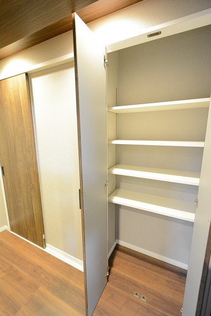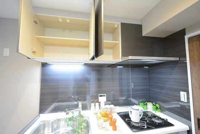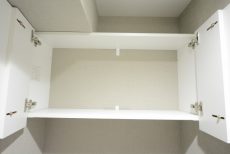 ペーパーのストックを入れておくのに便利な吊戸棚も設置されています。