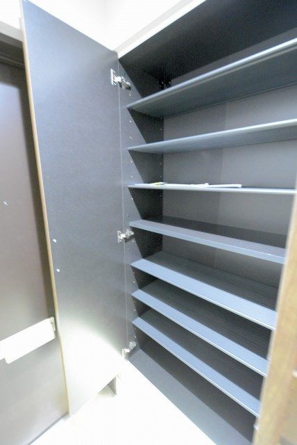 中の棚は高さが調節できるので背の高い履物でも入れることができますよ。