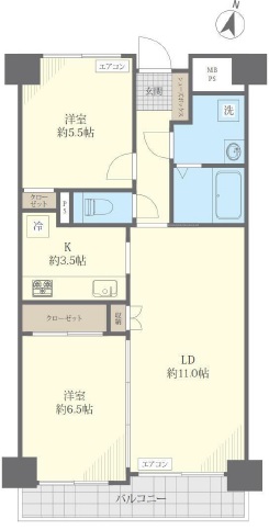 東側が約5.4帖、西側が約5.0帖のひろさです。