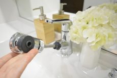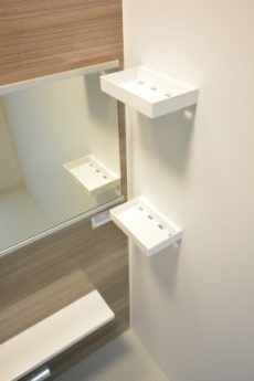 洗面カウンターも延長されていて洗面台周りの小物を置けるスペースになっています。