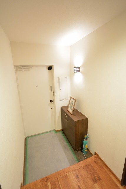 玄関を開けた感じ。人感センサー付きのライトが点いて暗くないですね。