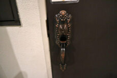 ヴィンテージ感がありますね。ドアの左上に何か付いてます。