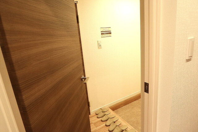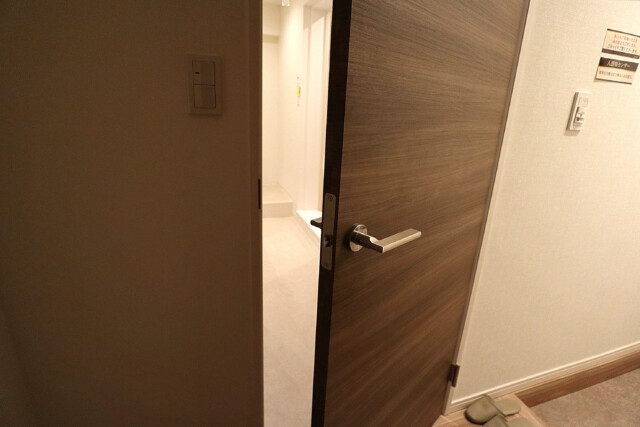ドア横にはテレビモニター付きインターホンがあって、お部屋の中から訪問者を確認する事が出来ますよ。もう、ドアの裏から息をひそめて覗く事もありません(笑)