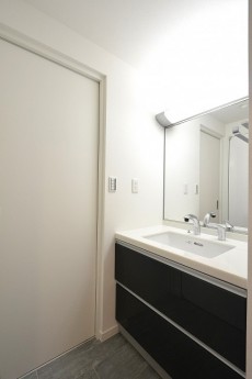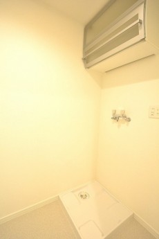 洗面台の奥にはランドリースペース、上部にはキャビネットも設置さsれています。