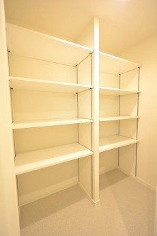 1帖ほどのスペースに可動棚がなんでも収納できそうです。