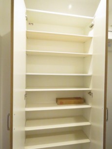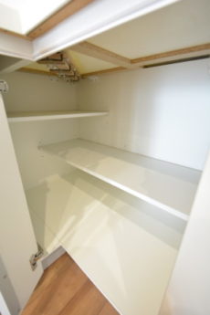洗濯機置場の上には物置棚が設置されています。