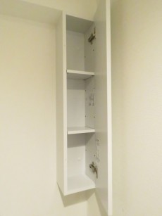 シューズBOXの向かい側はトイレ。ウォシュレットとスリムな戸棚がついています。