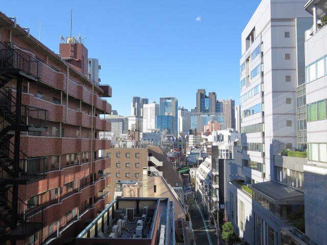 洋室の窓からの眺め。ちょうど正面が抜けていて遠くには新宿(多分)のビル群が見えます。夜は夜景がキレイかも☆
