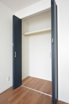 収納は間口が広くて使い易そうなクローゼット。足元を上手く使って収納力を更に上げていきましょう。