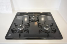 コンロは3口ガスコンロ、水栓には浄水機能がついています。