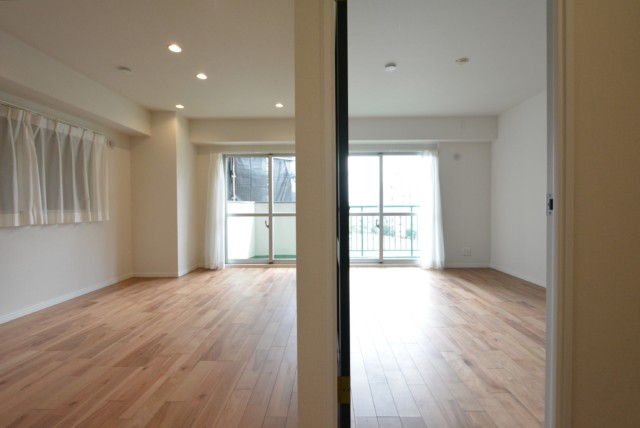 窓側からもご覧ください。キッチンはLDKの扉側にあります。