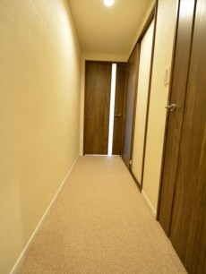 玄関をあがると目の前に廊下があり、その先にダイニングキッチンの扉があります。宅急便など急な来訪があっても玄関から居住スペースが見えることはありません。