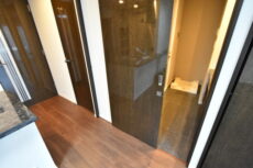 仕切りの扉は吊り下げタイプで床にレールも無く、引き込み式なので開けた時にもスッキリ…
