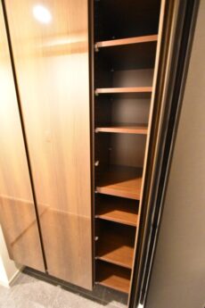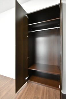 収納はクローゼットが付いています。両開きで中がひと目で見えて使い易そうですね。こういう収納を使うと無駄な買い物を減らせるらしいんですが・・・ホントですかね?