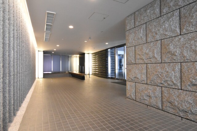 シャープでモダンなデザインながら、御影石を用いたりと重厚感も兼ね備えたマンションです。明治通りからも一本入ったとても静かな環境です。