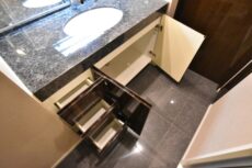 洗面台後ろ辺りにはリネン庫。大きくはありませんが、使う所に収納出来るのはいいですよね。