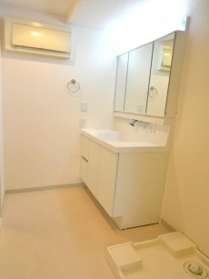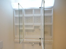 三面鏡の裏は収納スペースになっており、使い勝手が良さそうです。