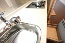 LIXIL製システムキッチンは人工大理石トップ・3口コンロ・蛇口一体型浄水器など充実しており、オプションで食洗機の設置も可能です。