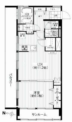 バルコニー・サンルーフに面している6.0帖の明るい洋室には奥行きのあるクローゼット付きです。