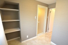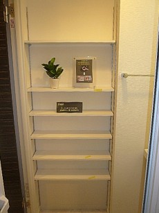 入って左側にあるリネン庫、高さの調整もできるので使い勝手も良さそうです。全て収納として使うも良し、下段には収納上段にはインテリアなんて使い方も良いですね~