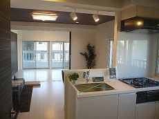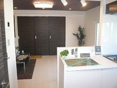 バルコニーに面している11.2帖のリビング・ダイニング・キッチンです。リビング・ダイニングの先には6.0帖の洋室があります。3枚の引き戸をあけると、開放感でいっぱいですね!