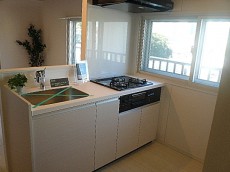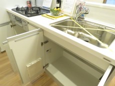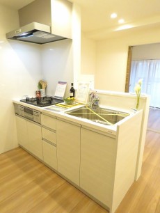 浄水機能付き水栓、お料理のはかどる3口ガスコンロと設備も◎です。LDK内には窓がないのでお料理中はレンジフードをオンにするのをお忘れなく・・・。
