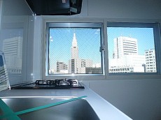 明るい対面式カウンターキッチンです。窓のあるキッチン、こちらからはお料理しながらでも都会的な景色がみえます!夜はどんな景色になるのでしょう。みてみたいですね。
