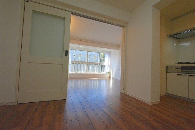 LDKから洋室へ。3枚の可動式扉で仕切れるようになっています。