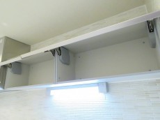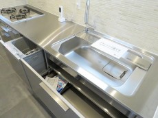 キッチンは上下に収納スペースたっぷり、食洗機付き、3口ガスコンロとスペック◎。リビング側から作業スペースが見えないので、急な来客時でも雑多なところを見られる心配はありません。