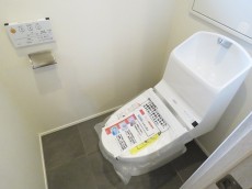 洋室のお隣はトイレ。ウォシュレット付きと吊戸棚がついています。