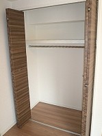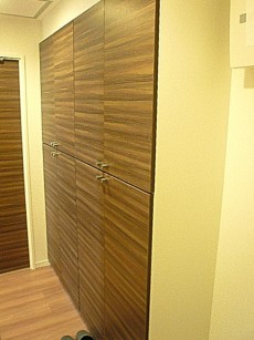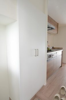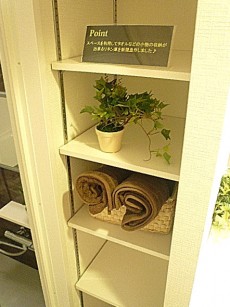 洗面台左手にあるリネン庫です。浴室が近いのでこちらにタオルを置けると助かりますね。