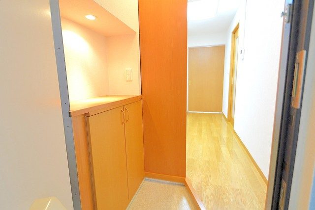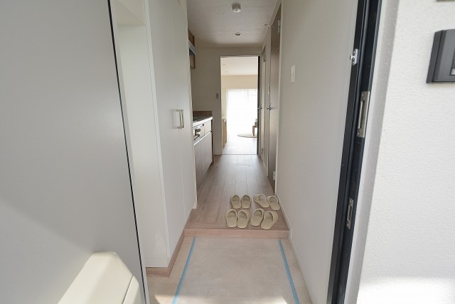 玄関入って左にある廊下です。玄関ドアからは中の様子がみえないのでプライバシーも守られますね。