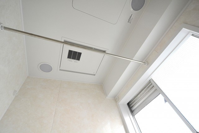 浴室換気乾燥機付きなので、これからの梅雨の季節、雨の日だって洗濯物は浴室で干せちゃいますね。
