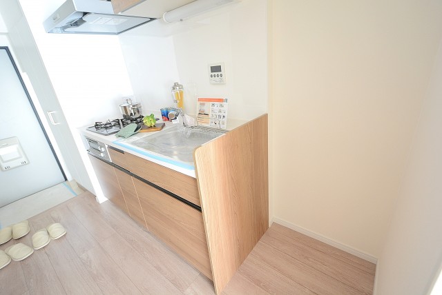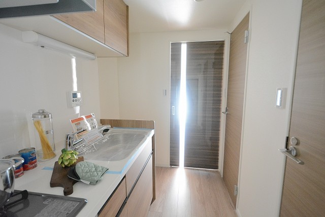 リビングダイニングへ行く前にカウンター付システムキッチンの見学です。