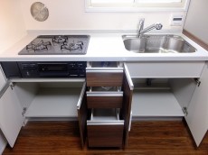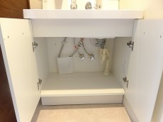 シンクの下にも収納スペースがあります。日用生活品のストックを入れて置くのにいいですね。