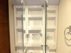 鏡の裏は一面収納なのでハブラシや洗顔フォームなどもスッキリ片付けられます。
