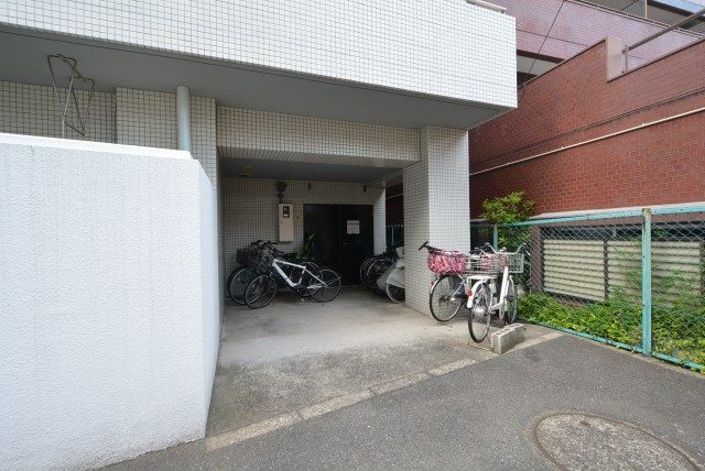 駐輪場はマンションの裏にあります。