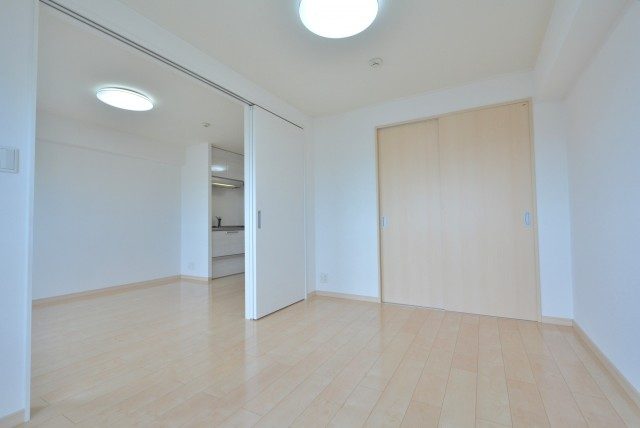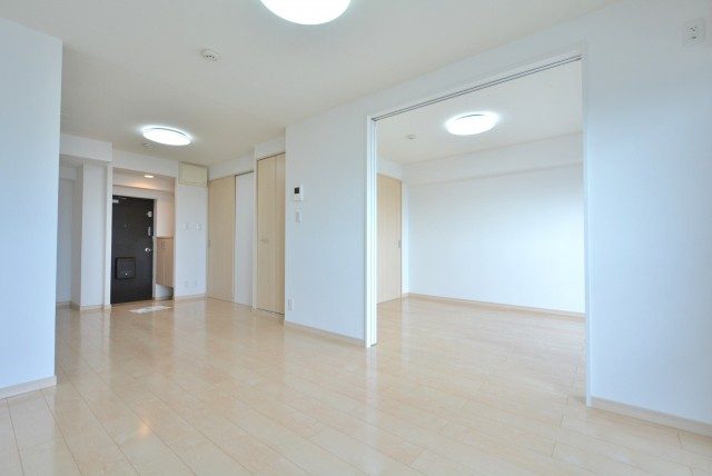 LDKに隣接した洋室は3枚の白い可動扉が仕切りになっています。