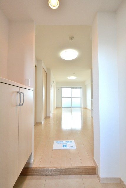 玄関を入ると正面にはシューズBOX、左右にダイニングキッチンと洋室の入口がつくられています。