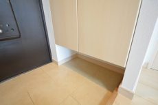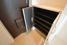玄関ホール。横に設置されたシューズBOXはトールサイズで収納力◎!棚の高さを変えればブーツなど背の高い靴もしっかり仕舞っておけます。