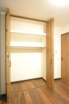 こちらのお部屋には収納に棚とクローゼットがついています。
