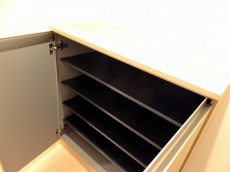 玄関右側にはカウンター付のシューズボックスがあります。カウンターにはお気に入りの写真・絵・お花などなどご自分のお気に入りスペースにアレンジしちゃってください~(*^^)v