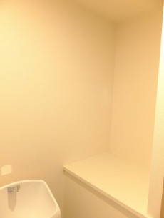 便座の左側には、広い収納スペースがありますので、棚を作ってキレイに収納しちゃってくださいね♪