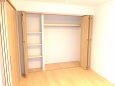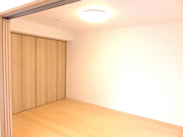 リビング奥には引戸で仕切られた5.5帖の洋室があります。お部屋の北側が大きなクローゼットになっているので、大きな物から小物まで、いっぺんにここにしまっておく事が出来ますね♪