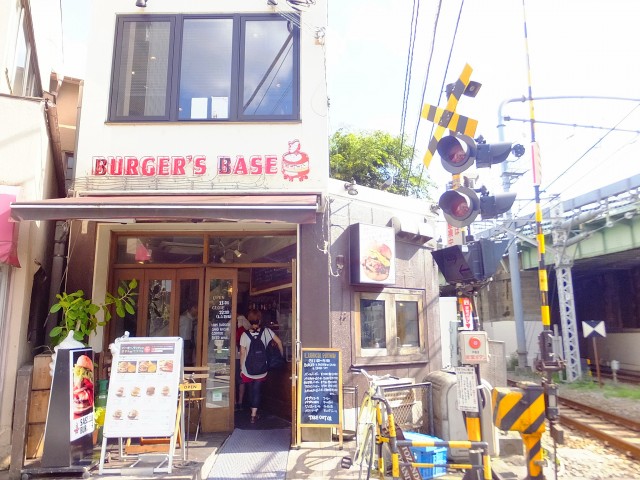 駅からすぐの踏切沿いにはこんなオシャレなハンバーガーショップがありました☆