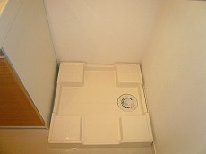 洗面化粧台並びにある洗濯機置き場です。洗濯洗剤などを仕舞う場所は残念ながらありませんが、お隣の洗面台、洗面ボウル下の収納にちょこんと置けると出し入れしやすいですね。