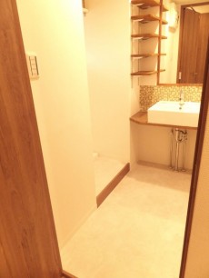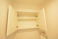 もちろん洗浄便座付き。INAX製のシャワートイレです。今は当たり前のように付いていますが、無かった時代はどうしてたんでしょうね?INAXさん感謝です(^^)縦型で使いやすい戸棚も付いています。