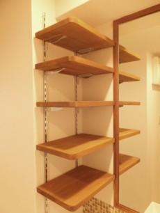 高さ調整な棚には日用品のストックや掃除用品などなど